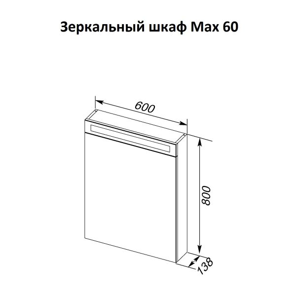 Зеркальный шкаф с LED-освещением с выключателем и электрической розеткой. Крепление к стене - гребенка. Подходит ко всем коллекциям.