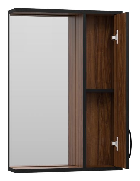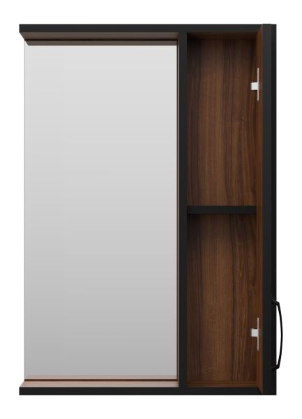 Зеркальный шкаф Misty Кедр 50см правый чёрный/орех