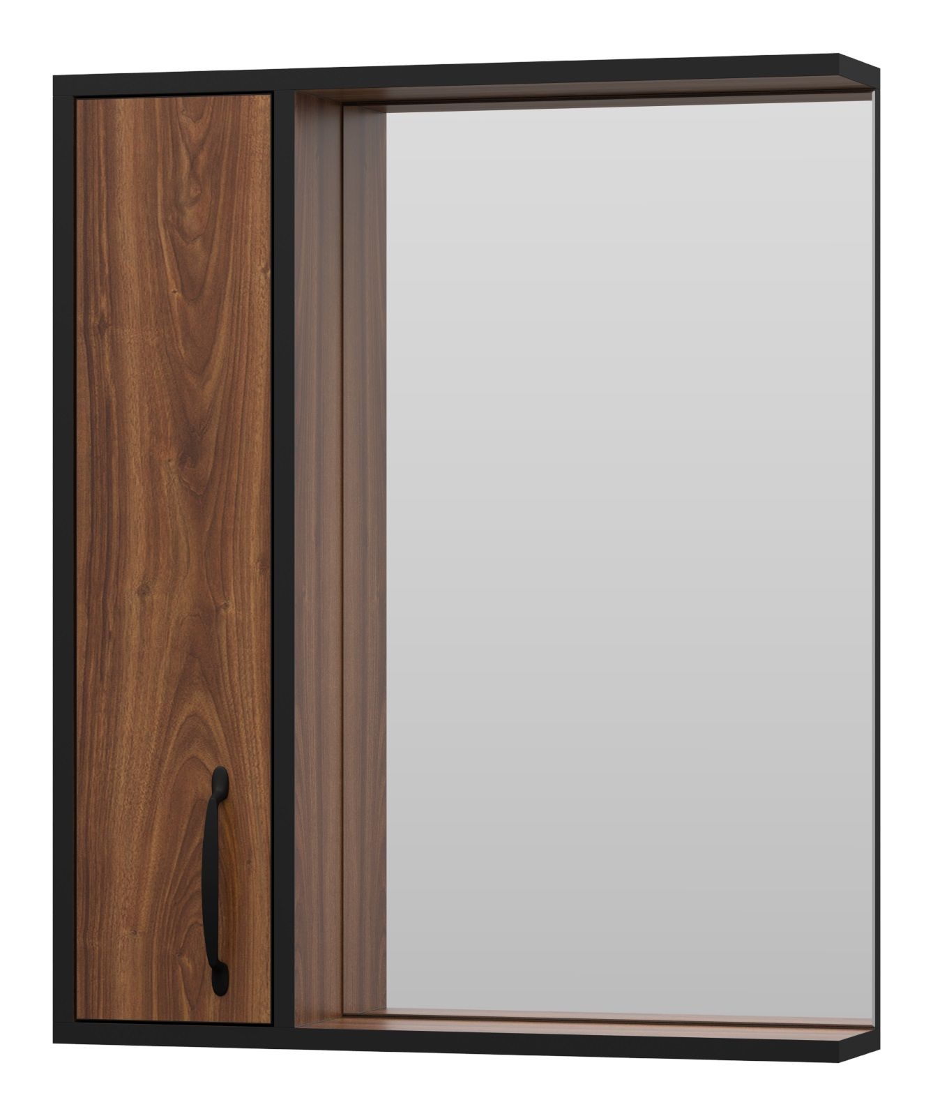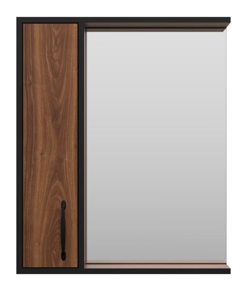 Зеркальный шкаф Misty Кедр 60см левый чёрный/орех