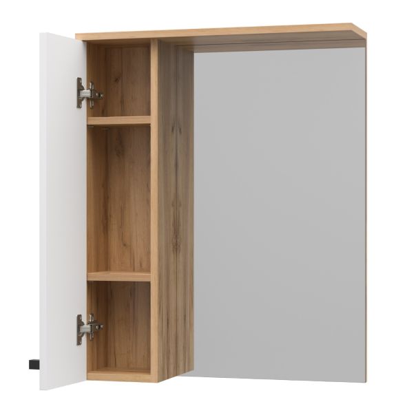 Зеркальный шкаф Misty Крафт 60см левый белый/дуб крафт золотой