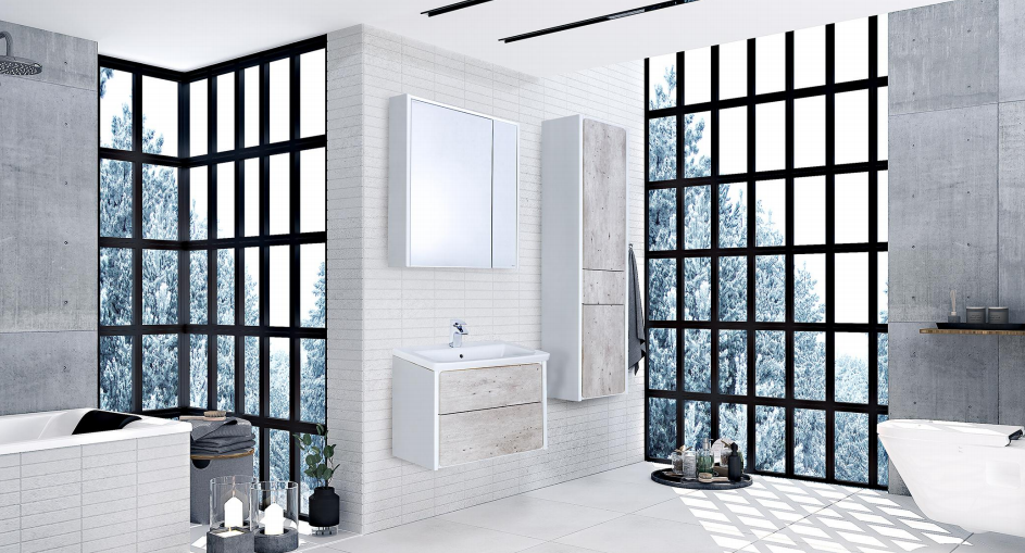 Зеркальный шкаф Roca Ronds ZRU9303007 60 см бетон/белый глянец Зеркальный шкаф:- розетка- LED-подсветка- сенсорный выключатель с диммером- петли Blum c плавным доводом- регулируемые полочки из просветленного/затемненного* стекла