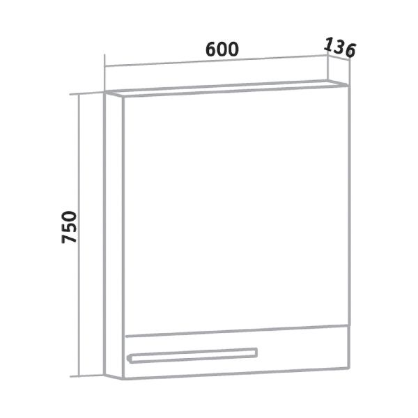 Зеркальный шкаф без подсветки с одной распашной дверкой, за которой две внутренние полки. Петли со встроенным доводчиком. Выпускается только в правом исполнении.