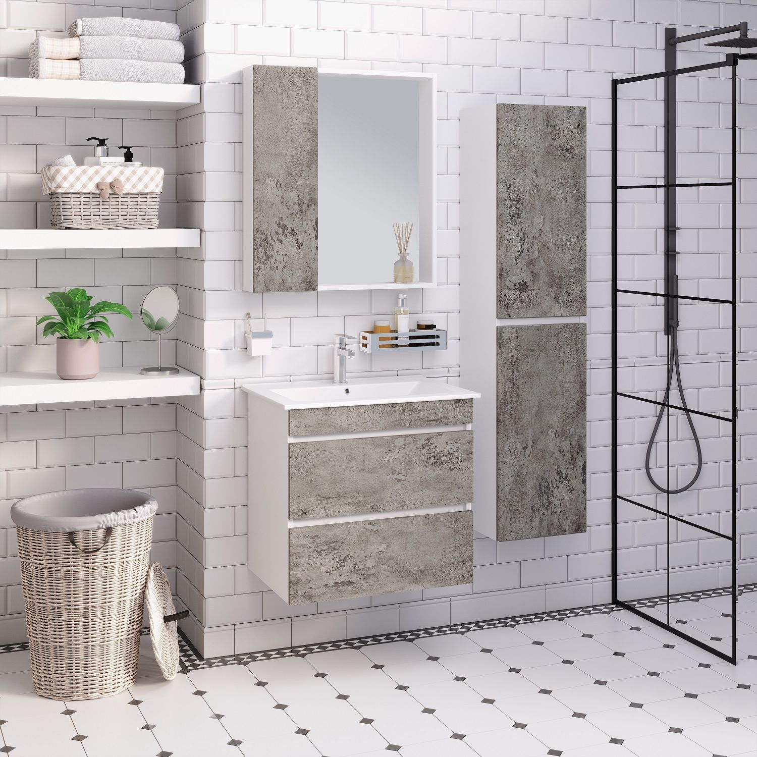 Зеркальный шкаф Runo серый бетон Манхэттен 65 (00-00001016) купить