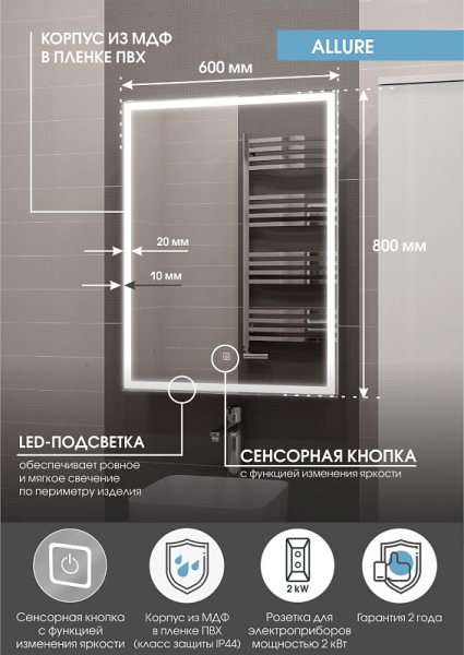 Тип:зеркало-шкаф с подсветкой