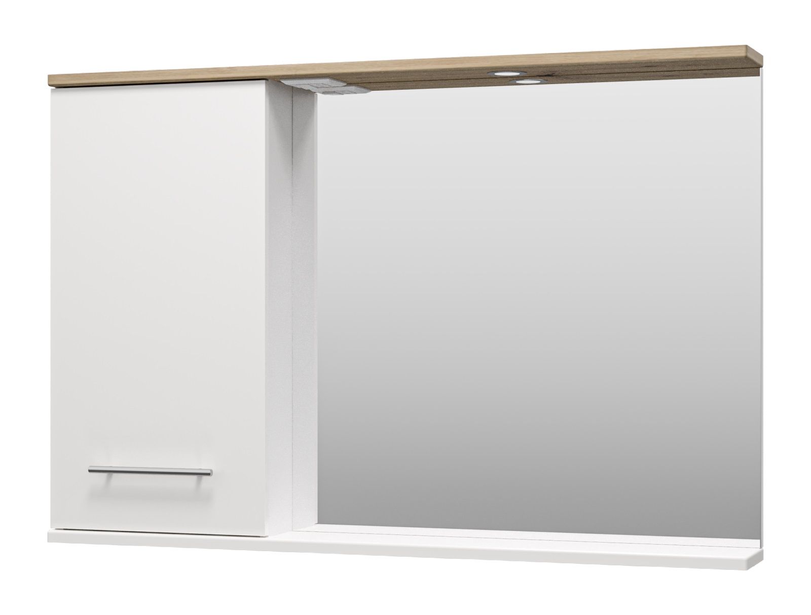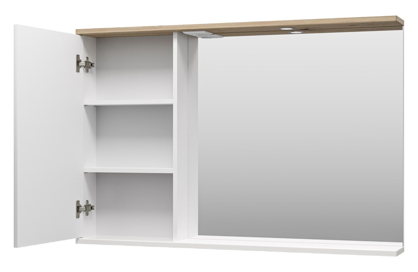 Зеркальный шкаф с подсветкой Misty Респект 120см левый белый/дуб Артизан