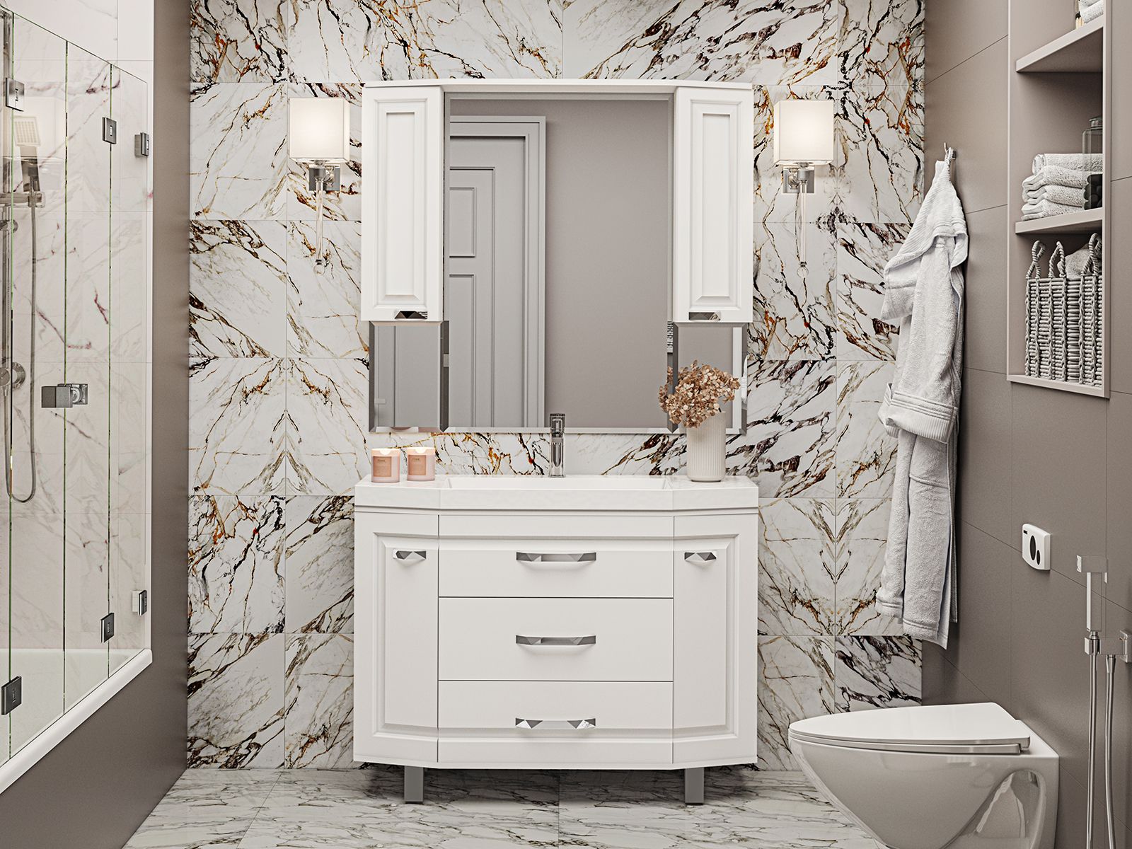 Зеркальный шкаф для ванной комнаты – это стильный акцент, который может преобразить любое пространство. С его элегантными линиями и продуманным дизайном, он идеально вписывается в современный интерьер. Внешняя поверхность шкафа, выполненная из качественных материалов, отражает свет, создавая ощущение простора и уюта.Внутреннее содержание шкафа умело организовано: разнообразные полки и отсеки позволяют удобно разместить все необходимые аксессуары – от косметики до бытовой химии. Зеркало, интегрированное в фасад, визуально расширяет пространство и облегчает утренние рутинные процедуры.Зеркальный шкаф для ванной комнаты – это идеальное сочетание красоты и практичности, которое станет незаменимым помощником в вашем дневном ритме.