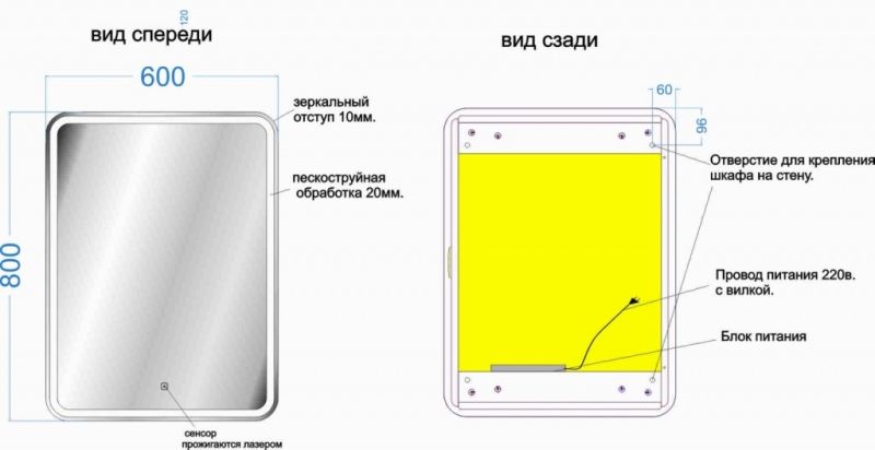 Тип:зеркало-шкаф с подсветкой