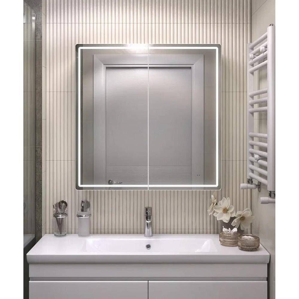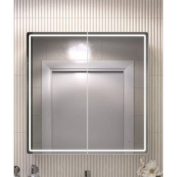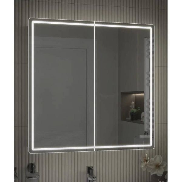 Зеркальный шкаф VIGO Geometry 118, 80 см. 2 дверцы, петли с механизмом доводчика, 4 стеклянных полки, светодиодная подсветка по периметру, бесконтактное включение (на взмах).