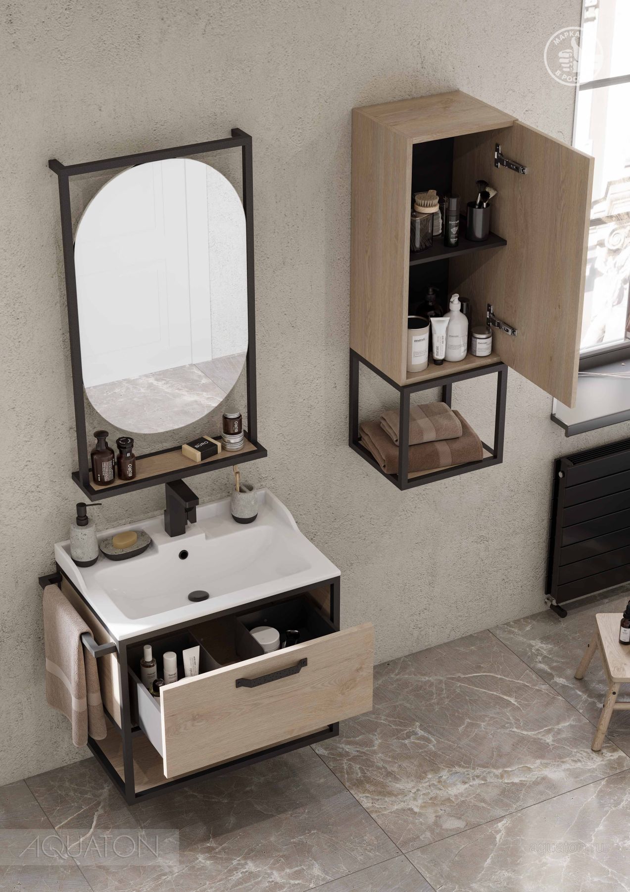 Зеркало Акватон Лофт Фабрик 50 дуб эндгрейн не только не только функциональный предмет интерьера ванной комнаты, но идеальное эргономичное дополнение дизайна, как небольшого, так и крупного помещения.Компания Акватон использует при производстве высококачественные водоотталкивающие материалы (сталь), соответствующие всем необходимым требованиям безопасности. Серия Лофт Фабрик отличается превосходным дизайном с соблюдением всех значимых элементов стиля hi-tech. Основным цветом, в котором выполнено зеркало Акватон Лофт Фабрик является черный, отлично подходящий большинству дизайнерских решений. Зеркало предусматривает удобную и вместительную систему хранения, состоящую из полочек. Важные размеры товара: ширина 52 см, глубина 14.2 см, высота 90 см.Страной бренда Акватон является Россия, все товары производятся с выполнением соответствующих стандартов качества, что позволяет быть полностью уверенными в долговечности и надежности. Зеркало Акватон Лофт Фабрик 50 дуб эндгрейн поможет сделать уютным любой интерьер и создать идеальную ванную комнату.