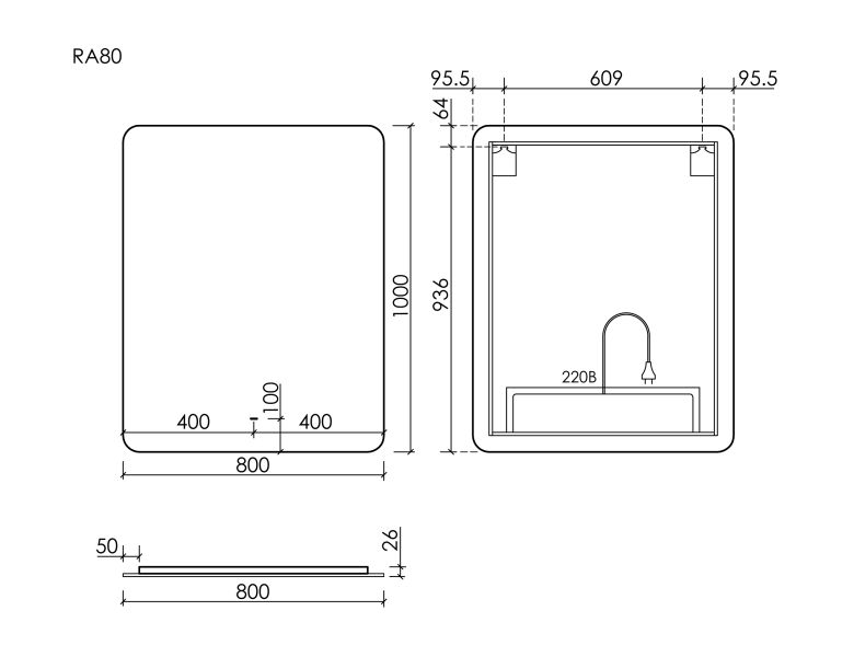 • Зеркало для ванной комнаты с подсветкой 800x1000 мм