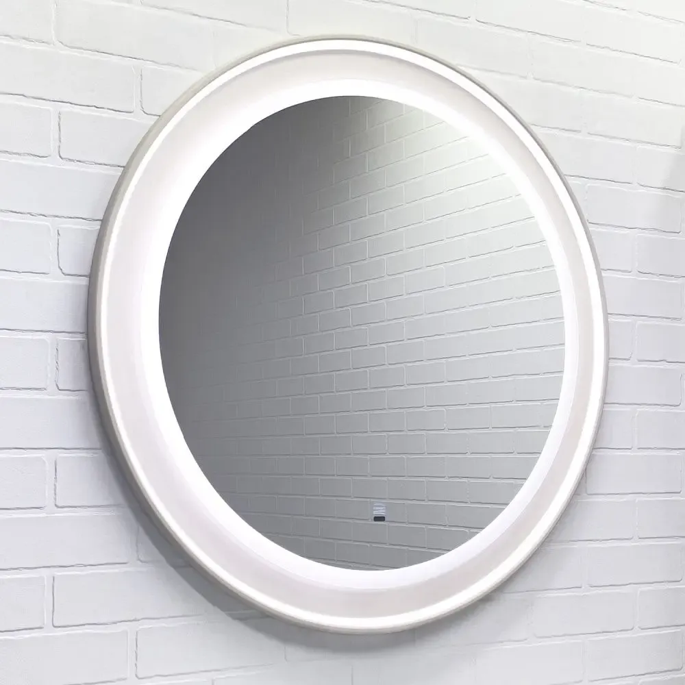 Зеркало оборудовано ореольной и фронтальной Led подсветкой с бесконтактным включателем со встроенной функцией регулировки яркости.