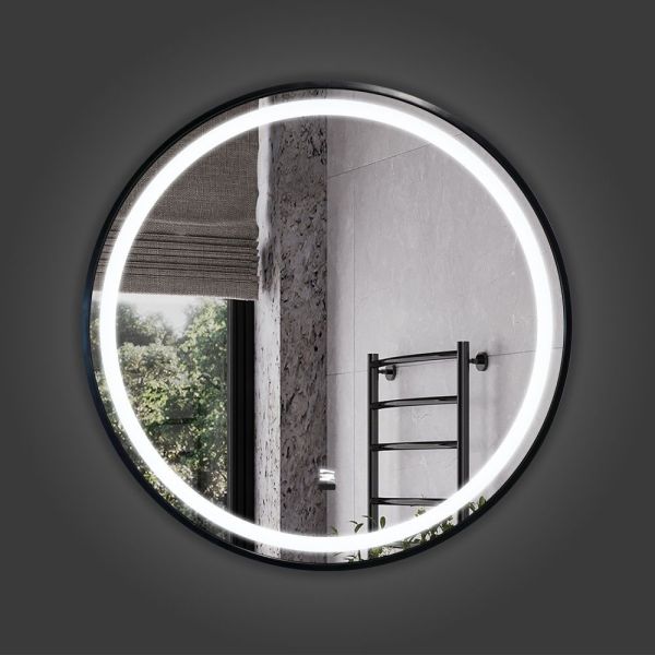 Зеркало Comforty в черной алюминиевой раме Comforty Лея-75 LED-подсветка, бесконтактный сенсор, антизапотевание