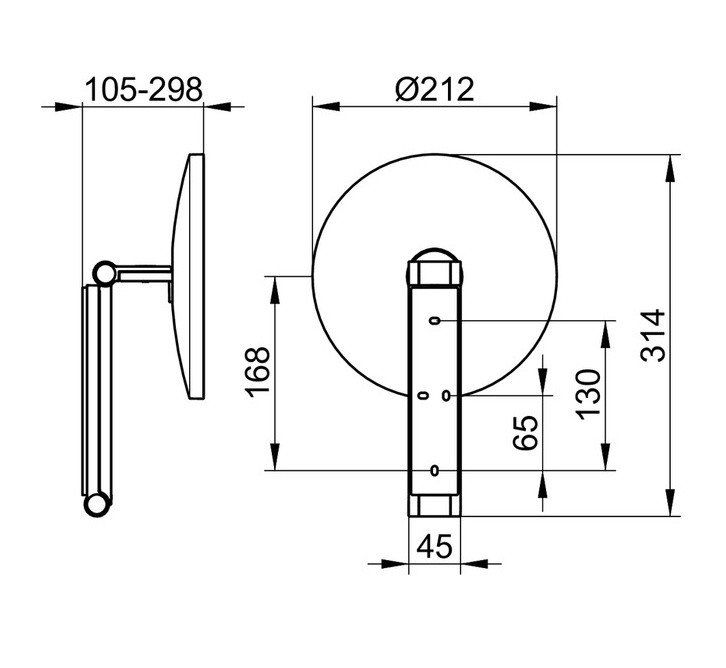 Keuco iLook_move 17612030000 Зеркало косметическое (бронза шлифованная), без подсветки, настенная модель на кронштейне с шарниром, регулируется в трех плоскостях, одностороннее зеркало, вогнутое, фактор увеличения x 5. Диаметр: 212 мм.