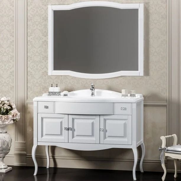Зеркало Opadiris Лаура Z0000012471 Белое матовоеВыполнено в классическом стиле с плавными изогнутыми формами. Фасадные элементы украшены резными узорами.Материал рамки: массив бука.