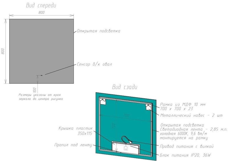 Оснащение: зеркало, крепеж, коробка, инструкция.