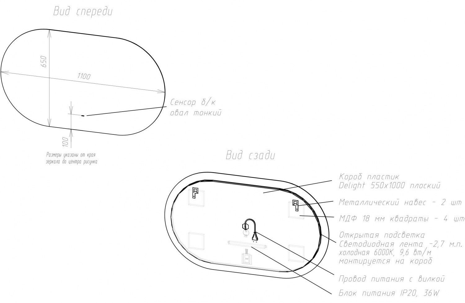Зеркало с холодной подсветкой Art&Max Torino 110x65см AM-Tor-1100-650-DS-F