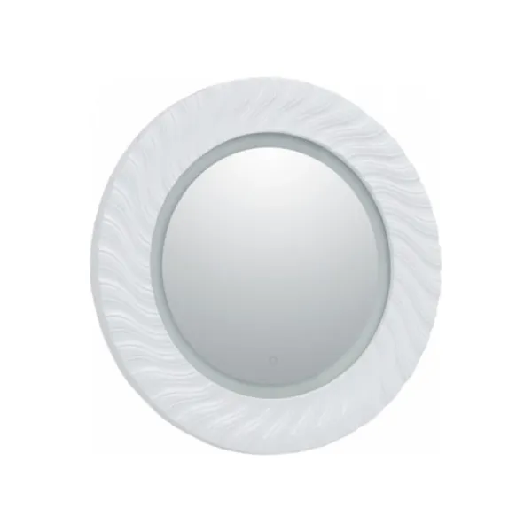 Круглое зеркало «Милан» в декоративной раме станет настоящим украшением ванной комнаты. Оно обладает характерными чертами стиля ар-деко. По широкой раме словно стилизованные солнечные лучи проходит искусная фрезеровка, изысканность которой подчеркнута белым глянцевым покрытием. Богатый декор подчеркивает LED-подсветка по внешнему краю зеркального полотна, обеспечивающая ровный загадочный свет, вносящий камерность в атмосферу ванной комнаты. Это придает помещению обстановку будуаров времен французских королей. Управлять подсветкой просто: ее включение и выключение производится с помощью сенсора, расположенного на зеркальном полотне.