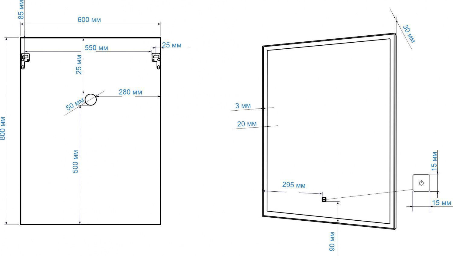 - Размер сенсорной кнопки: 15х15 мм