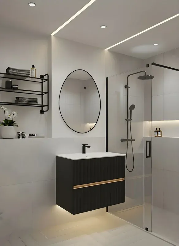 Ореольная подсветка подчеркивает форму зеркала и создает эффект парения.