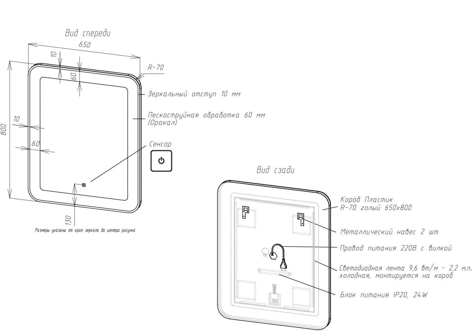 - Толщина светодиодной рамки: 60 мм