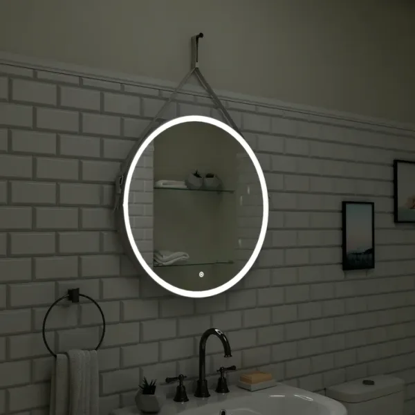 Зеркало Art&Max выполнено в современном стиле и отлично дополнит интерьер любой ванной комнаты. Благодаря подвесной конструкции модель не занимает много места, что позволяет экономить пространство в небольшой ванной комнате. Модель оснащена ремнем и встроенной светодиодной LED подсветкой с диммером. Ремень выполнен из натуральной кожи белого цвета.В комплект поставки входит крепеж и ремень.Особенности:
