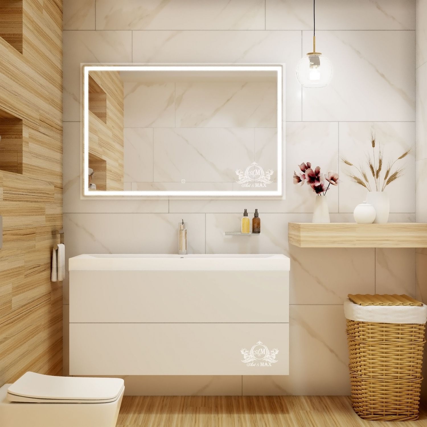 Зеркало Art&Max выполнено в современном стиле и отлично дополнит интерьер любой ванной комнаты. Благодаря подвесной конструкции изделие не занимает много места, что позволяет экономить пространство в небольшой ванной комнате. Модель оснащена встроенной светодиодной LED подсветкой с диммером. Задняя часть корпуса выполнена из УПС-пластика.В комплект поставки входит крепеж.Особенности: