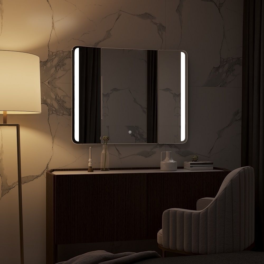 Зеркало Art&Max выполнено в современном стиле и отлично дополнит интерьер любой ванной комнаты. Благодаря подвесной конструкции модель не занимает много места, что позволяет экономить пространство в небольшой ванной комнате. Модель оснащена встроенной светодиодной LED подсветкой с диммером и 2 боковыми створками. Корпус изделия выполнен из МДФ.В комплект поставки входит крепеж.Особенности: