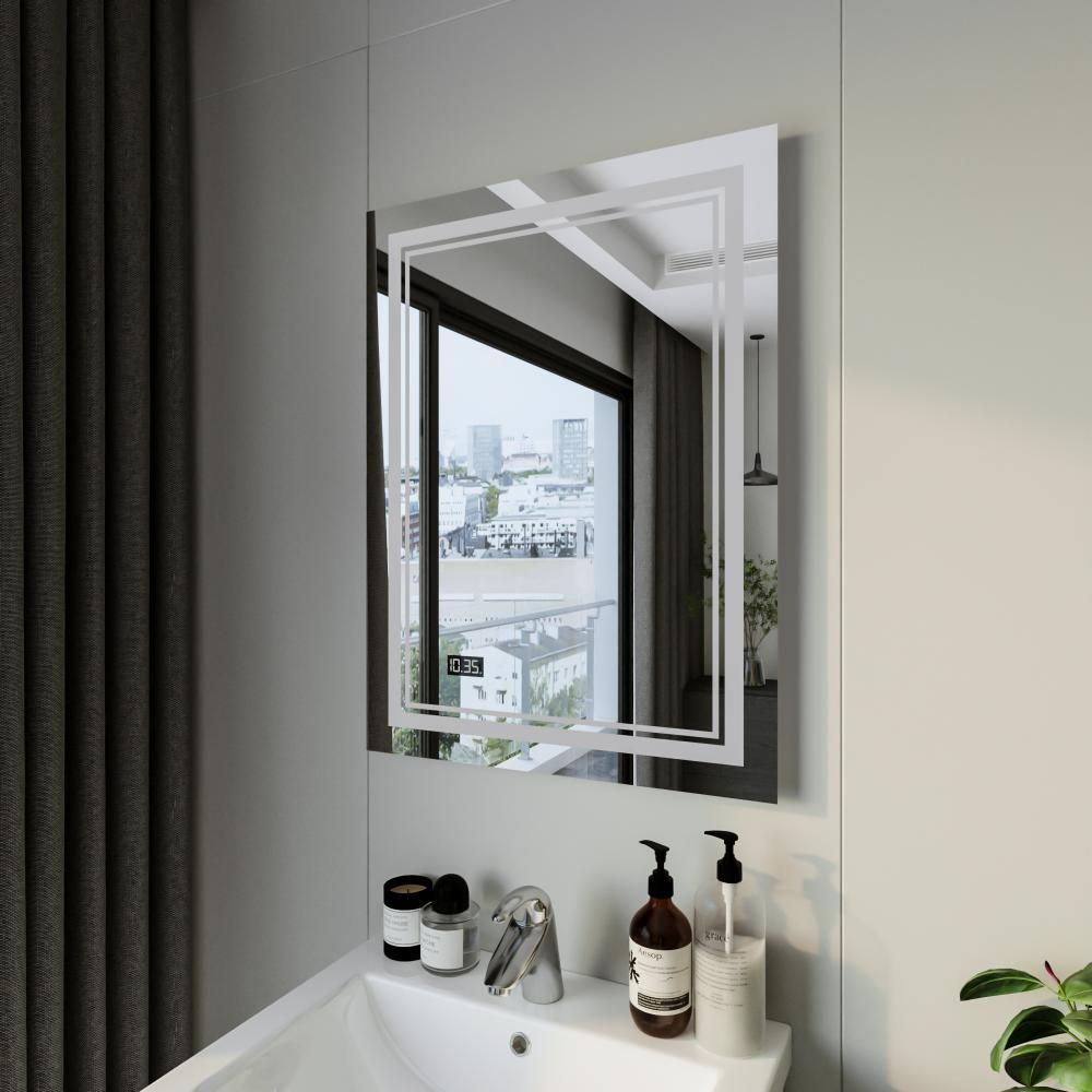 Зеркало с подсветкой Бриклаер Эстель-2 4627125414282 с часами 60 см на взмах руки купить
