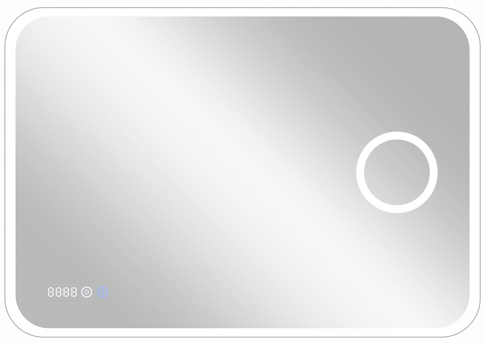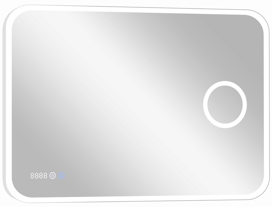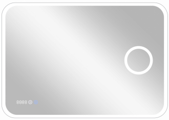 Зеркало "Bliss Led" 800х600 с увеличительным зеркалом, часамиLED подсветка 6000Ксенсорный выключательвстроенное увеличительное зеркало (линза) с 3-х кратным увеличениемдополнительная подсветка вокруг линзывстроенные часы