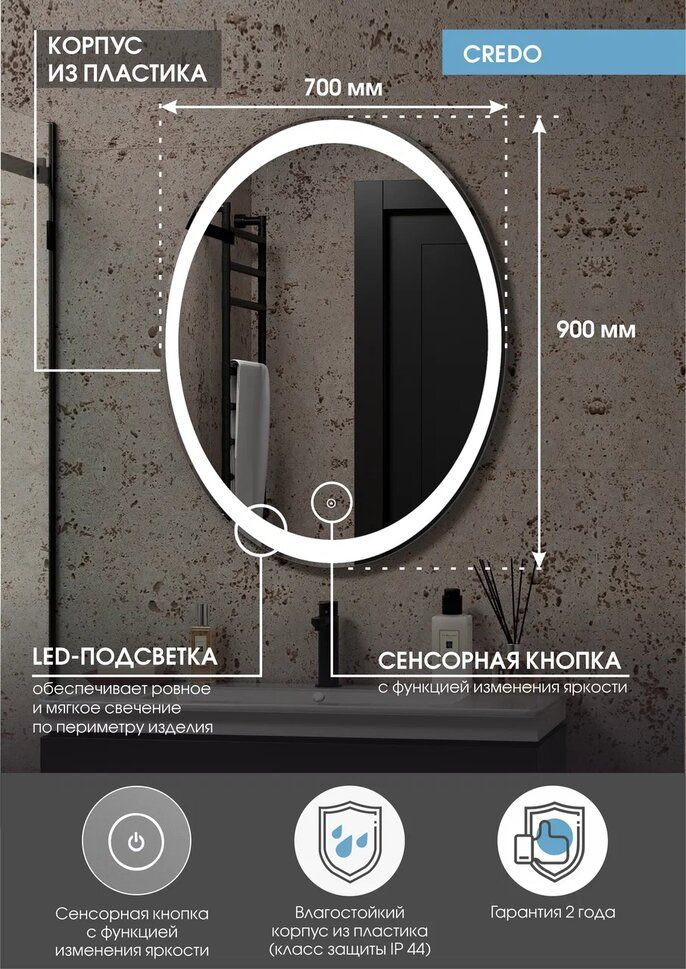 Зеркало "Credo Led" 700х900LED подсветка 6000Ксенсорный выключатель с функцией димирования