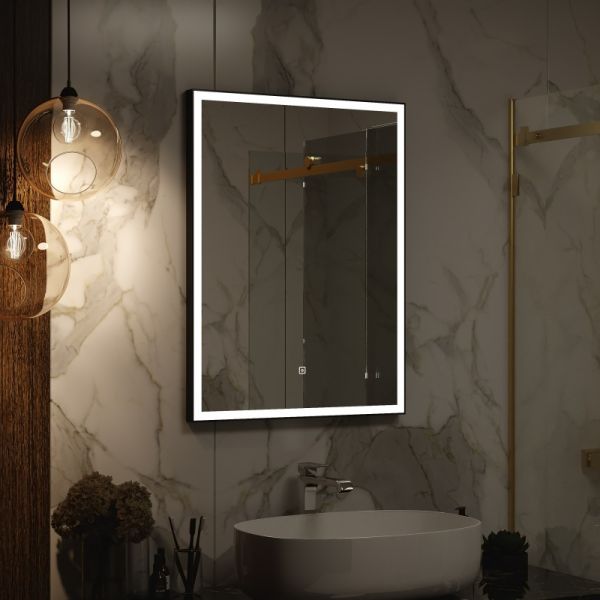 Зеркало "Frame Black LED" 700х800LED подсветка 6000Ксенсорный выключателькороб из алюминиевого профиля черного цвета
