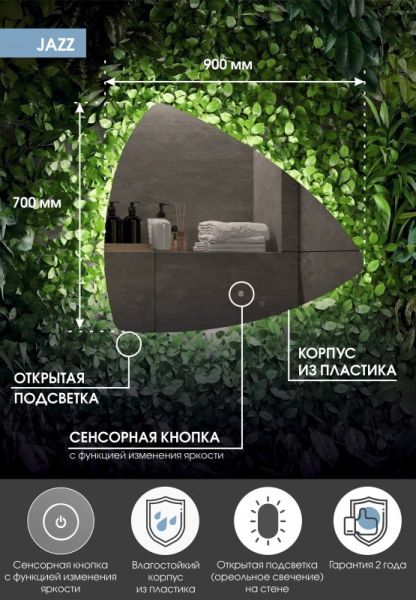 Зеркало "Jazz Led" 900х700LED подсветка 6000Ксенсорный выключатель с функцией димированияореольная подсветка