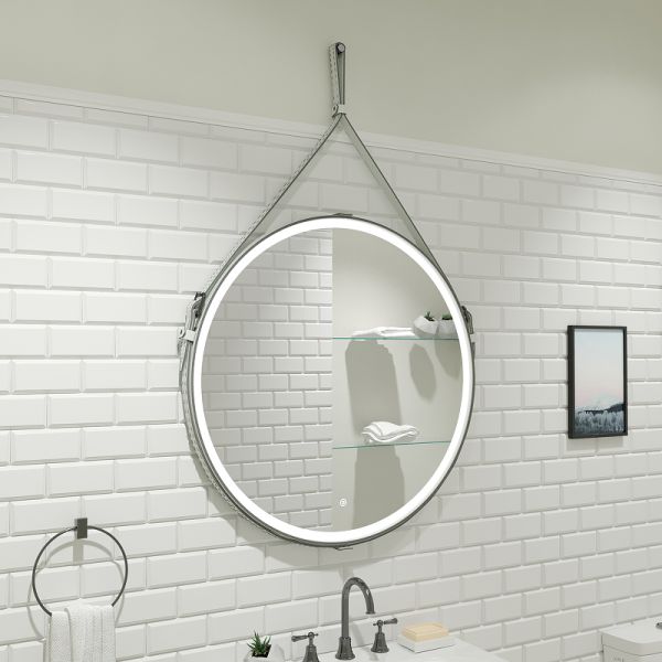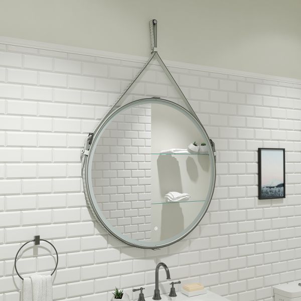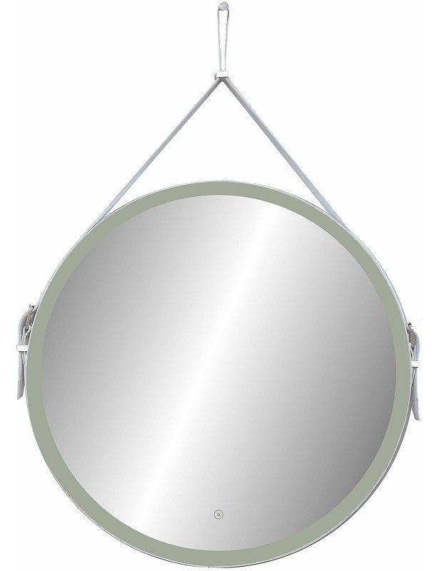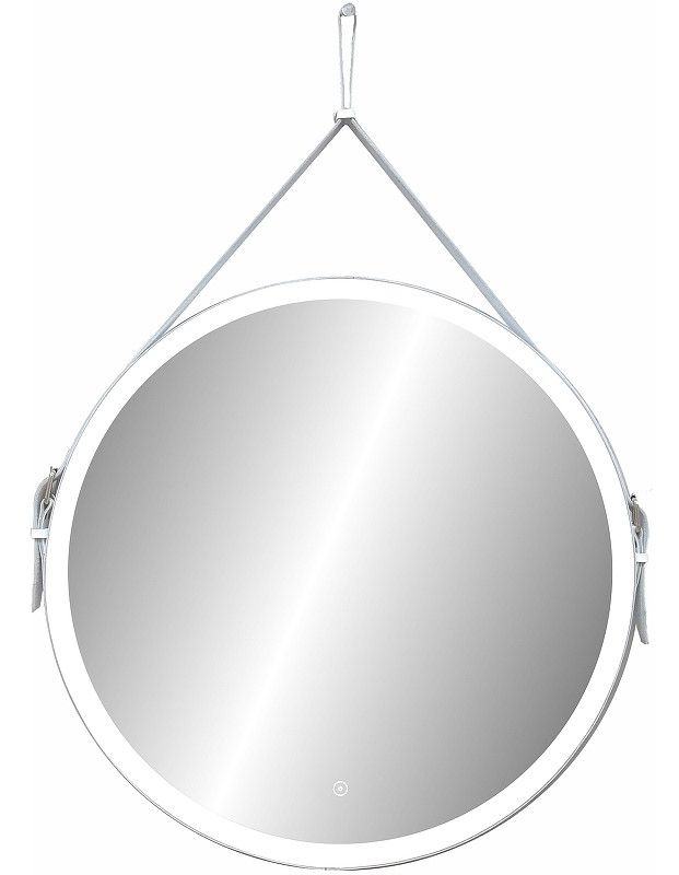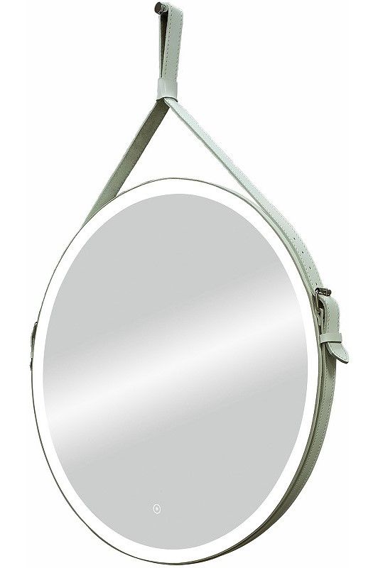 Зеркало "Millenium White Led" D 800 на ремне из натуральной кожи белого цветаLED подсветка 6000Ксенсорный выключатель с функцией димированияремень из натуркожи белого цвета