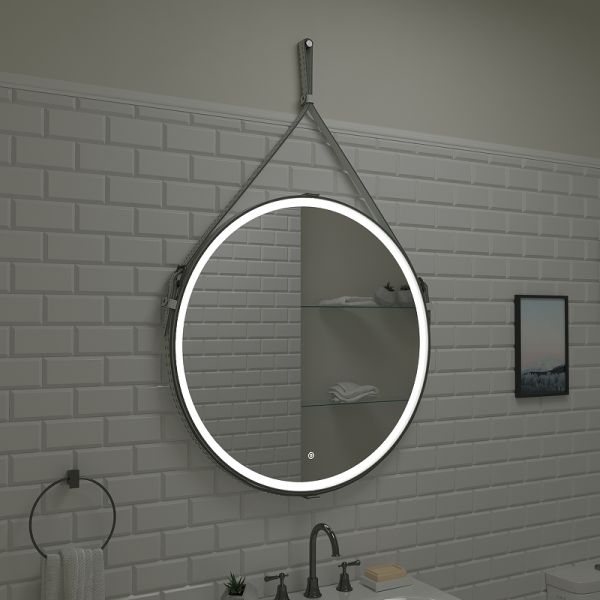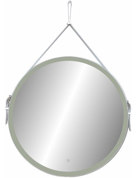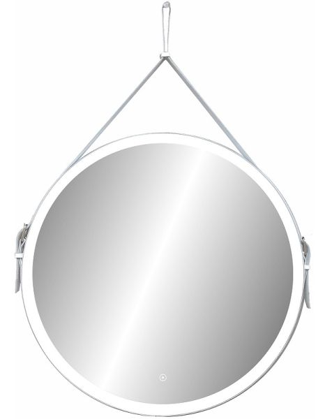 Зеркало "Millenium White Led" D 500 на ремне из натуральной кожи белого цветаLED подсветка 6000Ксенсорный выключатель с функцией димированияремень из натуркожи белого цвета