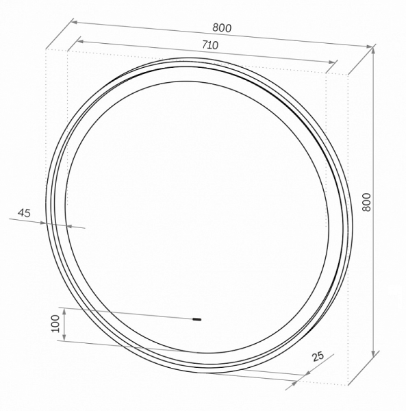 Зеркало "Planet black Led" D 800 с бесконтактным сенсоромLED подсветка 6000Кбесконтактный сенсор с функцией димированиярама - МДФкороб в черной пленке Soft touch.