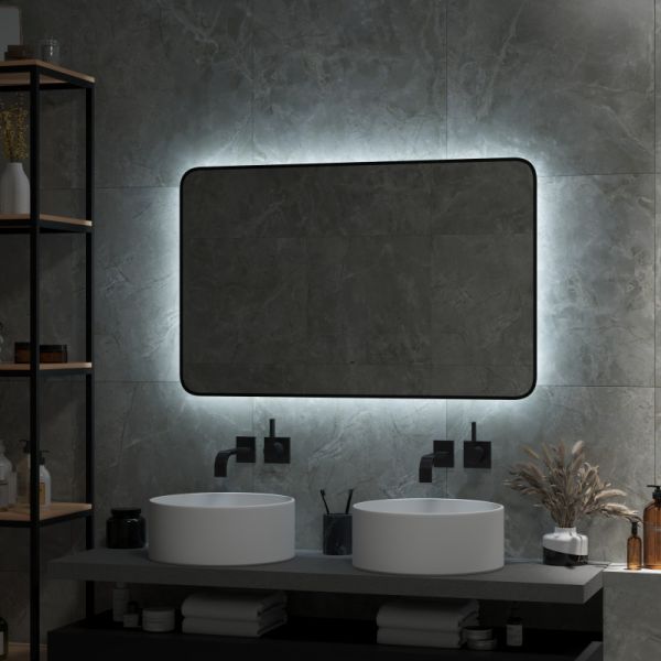 Зеркало "Torry Led" с фоновой подсветкой, бесконтактным сенсором, черной окантовкой 1200х700LED подсветка 6000К;бесконтактный сенсор с функцией димирования;открытая ореольная подсветка.