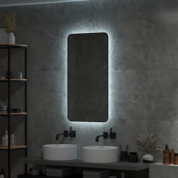 Зеркало "Torry Led" с фоновой подсветкой, бесконтактным сенсором, черной окантовкой 600х1000LED подсветка 6000К;бесконтактный сенсор с функцией димирования;открытая ореольная подсветка.