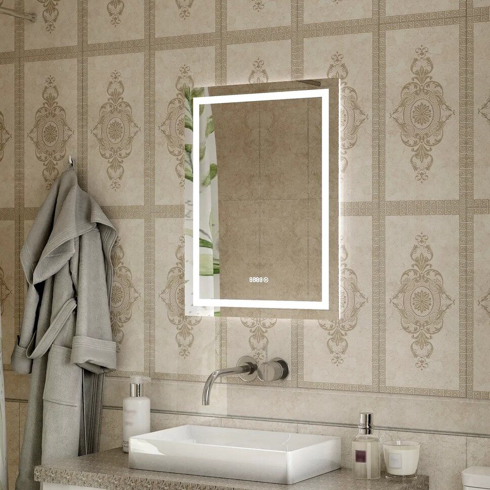 Зеркало "Verte Led" 600х800 с часами, датчиком движенияLED подсветка 6000Кдатчик движениявстроенные часы