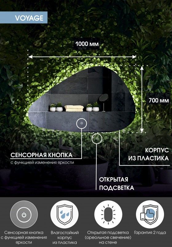 Зеркало "Voyage Led" 1000х700LED подсветка 6000Ксенсорный выключатель с функцией димированияореольная подсветка