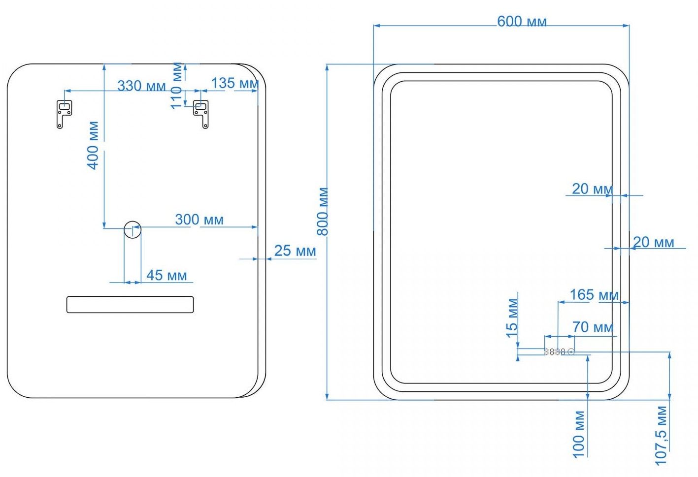 Зеркало с подсветкой и часами Art&Max Genova 60x80см чёрный AM-Gen-600-800-S-F-Т купить