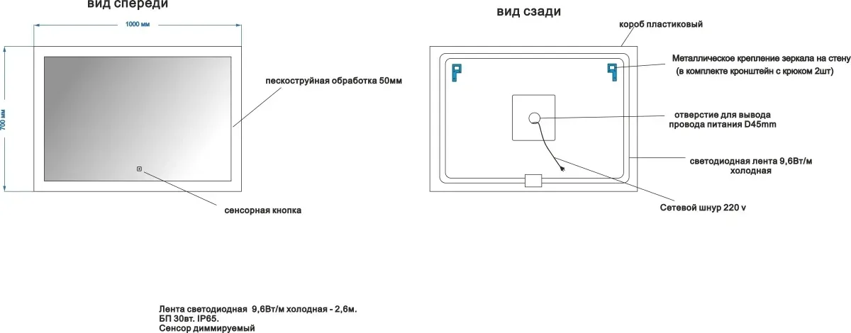 • Ширина светодиодной рамки: 50 мм