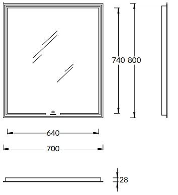 Зеркало MiO выполнено с деликатной подсветкой по периметру. Светодиодная подсветка включается одним прикосновением к сенсору в нижней части зеркального полотна, там же нанесён логотип KERAMA MARAZZI. Имеется встроенный диммер.