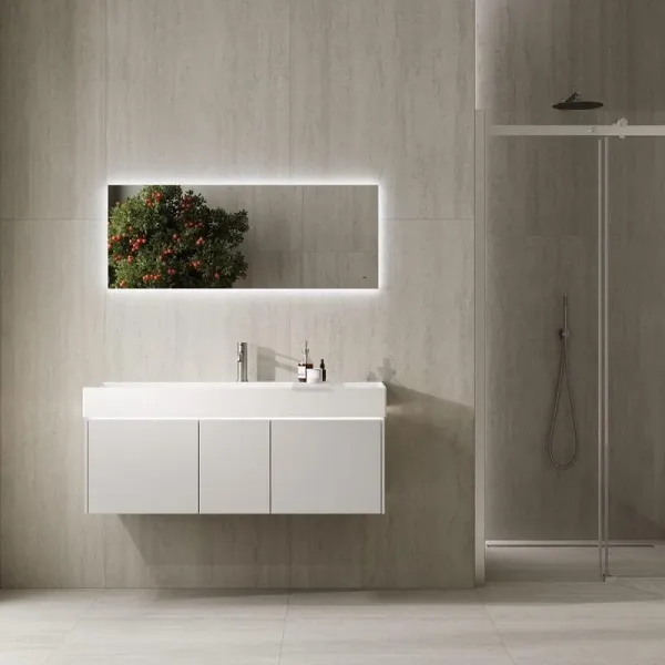 Прямоугольные зеркала VETRATA S представлены в размерах 45×90 и 45×117см. Каждое зеркало имеет три режима интерьерной подсветки: её температуру можно менять бесконтактно, простым взмахом руки. Также зеркала оснащены диммером, регулирующим интенсивность свечения, и функцией антизапотевание. Допустимо горизонтальное и вертикальное расположение зеркала, для этого предусмотрены три точки крепления. Кроме того, можно использовать два вертикальных зеркала одновременно с тумбами шириной 120 см.