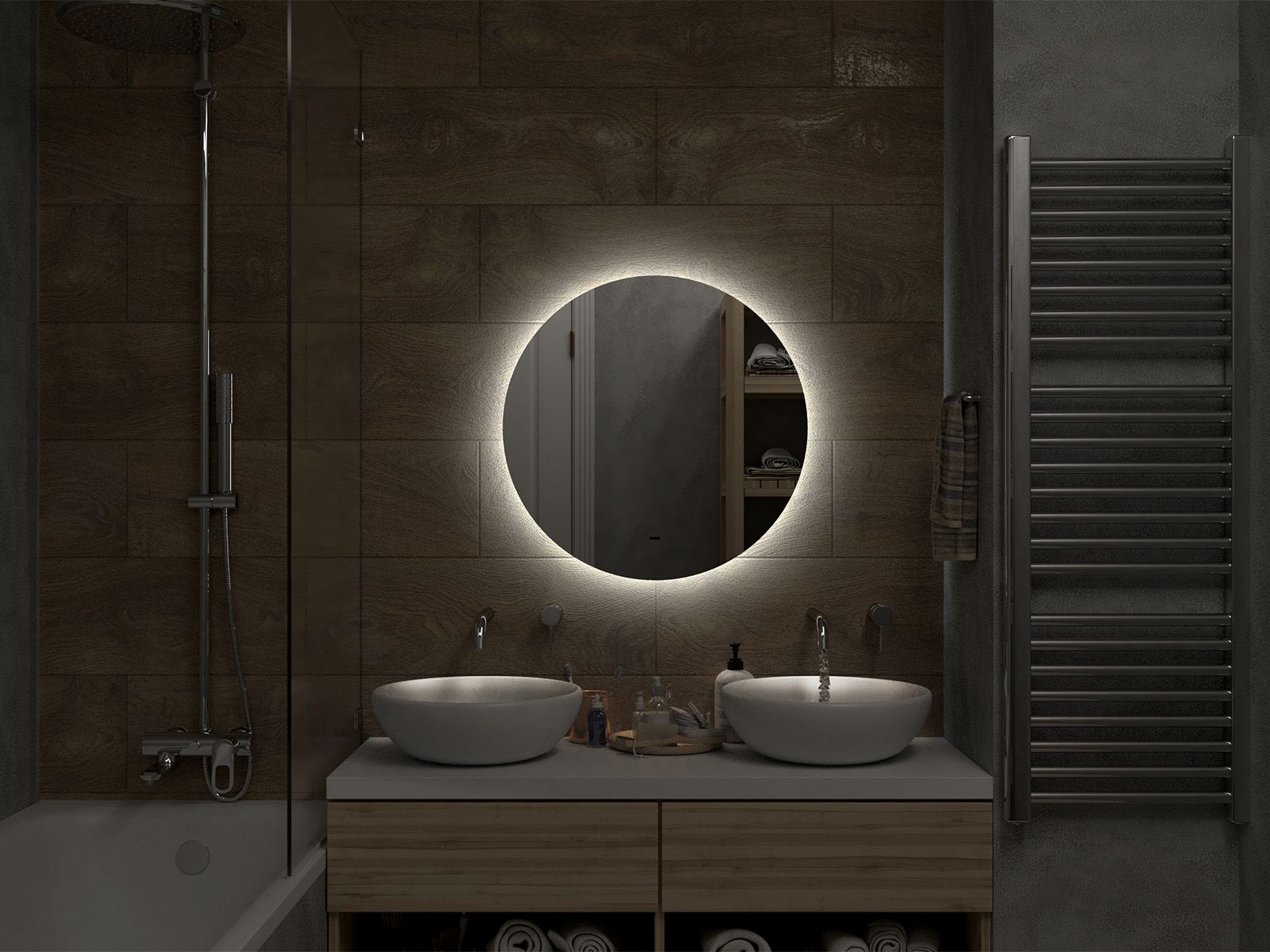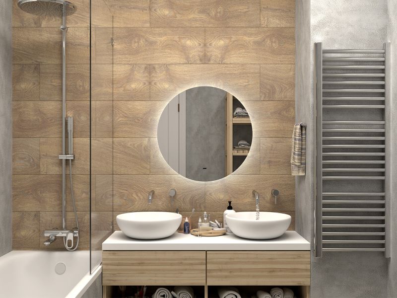 Зеркало с подсветкой для ванной комнаты — это элемент интерьера, который сочетает в себе функции, эстетику и современный дизайн. Его изящная форма и тонкие линии легко вливаются в любое пространство, создавая атмосферу утонченности и уюта.Интегрированная светодиодная подсветка обрамляет зеркало, даря мягкий, рассеянный свет, который не только позволяет удобно наносить макияж, но и наполняет ванную комнату теплом и позитивной энергией.Классический дизайн позволяет использовать его в различных стилях – от минимализма до современного эклектичного оформления. Оно прекрасно вписывается в любую цветовую гамму, будь то нейтральные тона или более яркие акценты.