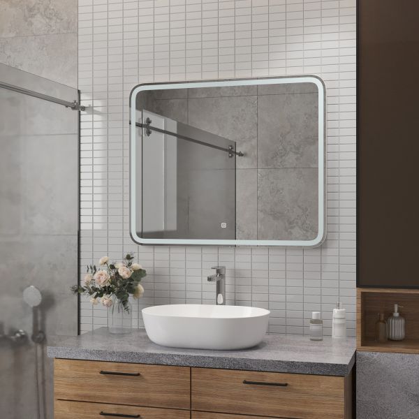 Зеркало с подсветкой для ванной комнаты — это элемент интерьера, который сочетает в себе функции, эстетику и современный дизайн. Его изящная форма и тонкие линии легко вливаются в любое пространство, создавая атмосферу утонченности и уюта.Интегрированная светодиодная подсветка обрамляет зеркало, даря мягкий, рассеянный свет, который не только позволяет удобно наносить макияж, но и наполняет ванную комнату теплом и позитивной энергией.Классический дизайн позволяет использовать его в различных стилях – от минимализма до современного эклектичного оформления. Оно прекрасно вписывается в любую цветовую гамму, будь то нейтральные тона или более яркие акценты.