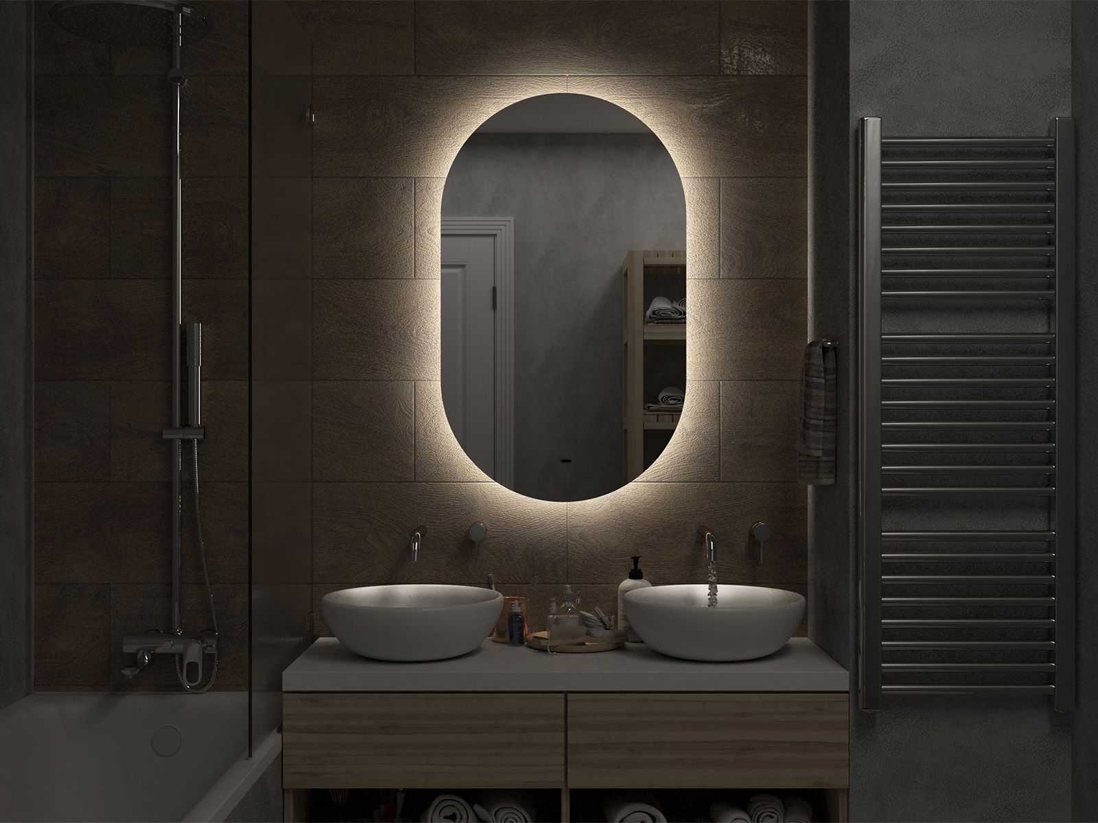 Зеркало с подсветкой для ванной комнаты — это элемент интерьера, который сочетает в себе функции, эстетику и современный дизайн. Его изящная форма и тонкие линии легко вливаются в любое пространство, создавая атмосферу утонченности и уюта.Интегрированная светодиодная подсветка обрамляет зеркало, даря мягкий, рассеянный свет, который не только позволяет удобно наносить макияж, но и наполняет ванную комнату теплом и позитивной энергией.Классический дизайн позволяет использовать его в различных стилях – от минимализма до современного эклектичного оформления. Оно прекрасно вписывается в любую цветовую гамму, будь то нейтральные тона или более яркие акценты.