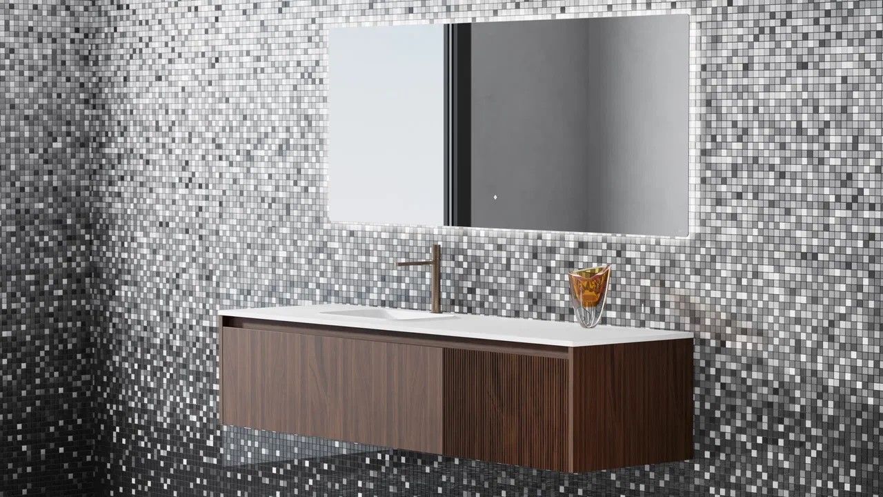 Идеальные линии, шлифовка «Еврокромка», фоновая LED-подсветка по всему периметру, управляемая одним касанием, эффект парящего зеркала благодаря тонкому корпусу в 20 мм, смещённому от края на 15 мм – коллекция OMBRA создана для тех, кто выбирает продуманный, стильный и комфортный интерьер ванной комнаты.