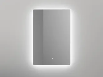 Идеальные линии, шлифовка «Еврокромка», фоновая LED-подсветка по всему периметру, управляемая одним касанием, эффект парящего зеркала благодаря тонкому корпусу в 20 мм, смещённому от края на 15 мм – коллекция OMBRA создана для тех, кто выбирает продуманный, стильный и комфортный интерьер ванной комнаты.