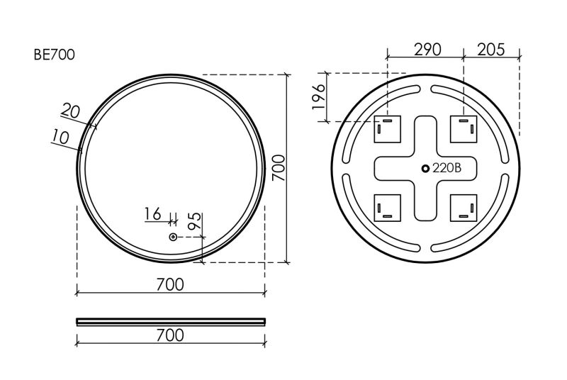 • Зеркало круглое с фронтальной подсветкой