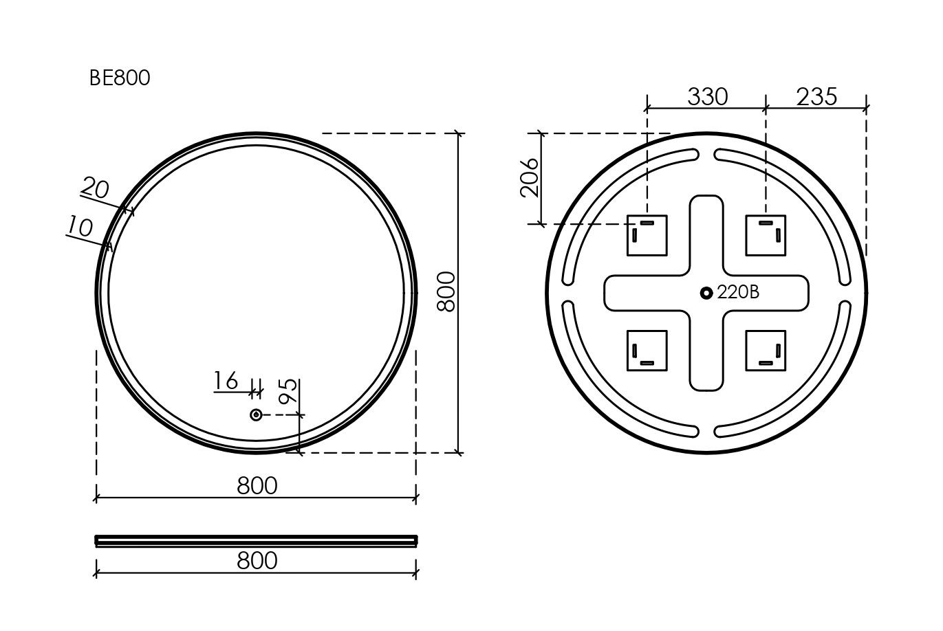 • Зеркало круглое с фронтальной подсветкой